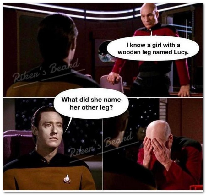 Dziś lista dość mocno urozmaicona. Będzie trochę świńtuszenia, pokażę jak zachowywać się na pierwszej randce, rozwiążemy odwieczny problem pizzy z ananasem, sporo memów ze StarTrek oraz obowiązkowo daddy-jokes. Będą też gierki słowne oraz całkiem sporo politycznej niepoprawności, więc chociaż mówię to za każdym razem, powiem i dziś: przed konsumpcją polecam wyjąć kij z sempiterny, rozluźnić się i ogólnie odpuścić.