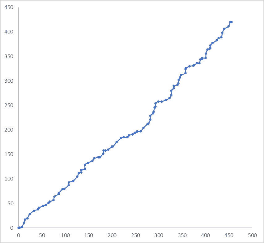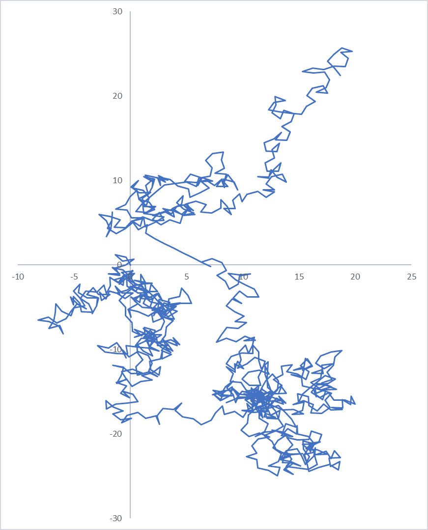 Dawno, dawno temu pokazałem jak wygenerować ścieżkę losowego spaceru na rozmaite sposoby. Tu można poczytać.