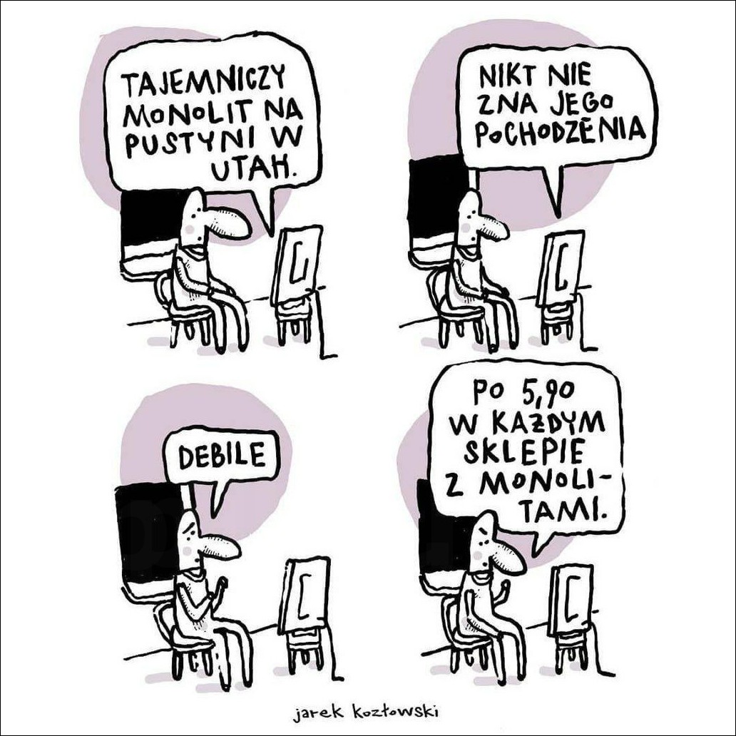 Czas na comiesięczną porcję śmiechostek. Dziś aż 207 obrazków na różne tematy. Będzie można rozwiązać jeden warzywny rebus, dowiemy się czemu koty tak bardzo lubią wchodzić do pudełek, jak wygląda lew z lotu ptaka oraz czemu warto robić sobie dużo selfie. Poznamy różnicę między kierowcą autobusu a pilotem oraz idealny sposób na zorganizowanie biura w domu. Przypomnimy sobie jak wygląda konik morski i uświadomimy sobie jakie niebezpieczeństwa czekają na podróżników w czasie.