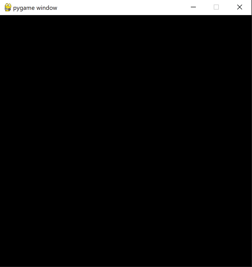 Tutaj wydarza się całkiem sporo różnych różności. Najpierw inicjalizujemy bibliotekę pygame, potem ustalamy sobie rozmiar okna na 500x500 pikseli, wreszcie w nieskończonej pętli wyświetlamy zawartość okna, czekamy 100 milisekund i na koniec sprawdzamy, czy użytkownik nie zamknął okienka iksem. Efekt jest o, taki: