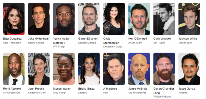 Poniżej zrzut ekranu ze strony Google z listą aktorów - w sumie nie ma tu nikogo znanego (przynajmniej mi) - może oprócz Jake-a Gyllenhaala, którego w sumie dość lubię, głównie za rolę Coltera w "Source Code".