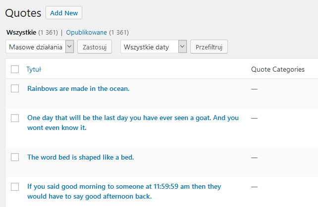 Oprócz tego dodałem na bocznym pasku więcej losowych cytatów. Mam już ich razem ponad 1300, jest z czego wybierać.