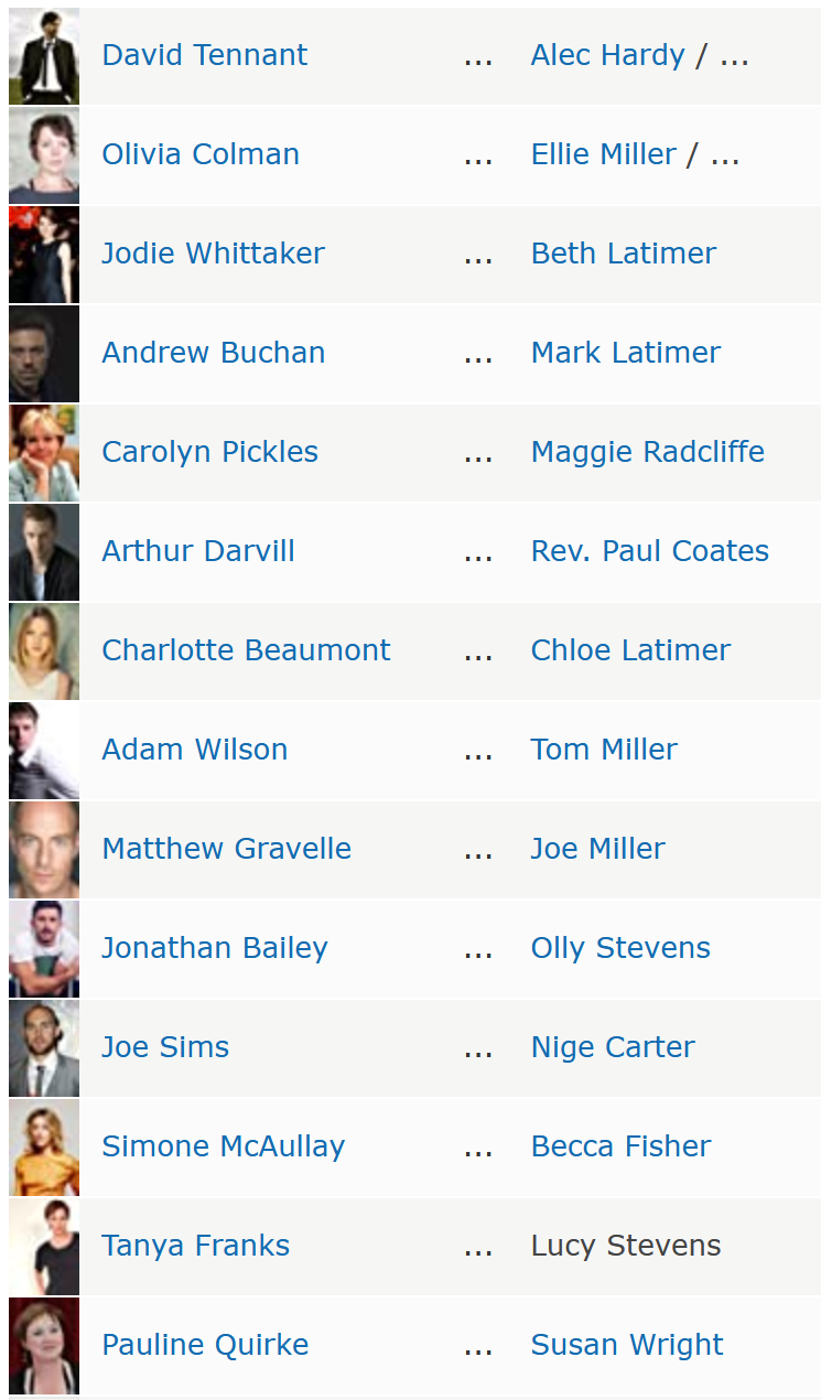 Jako ciekawostkę dodam jeszcze, że aż dwadzieścioro pięcioro aktorów grających w Broadchurch zagrało również w Doctor Who: