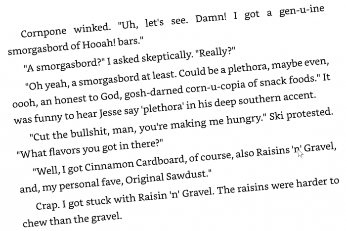 Pierwsze sto stron prawdę mówiąc trochę przemęczyłem - gdyby nie genialny wprost humor Autora, cała reszta zdaje się taka raczej przeciętna. Ot, kolejny sierżant armii amerykańskiej wrzucony w wir jakiejś kosmicznej machiny wojennej, przecież to już było z milion razy.