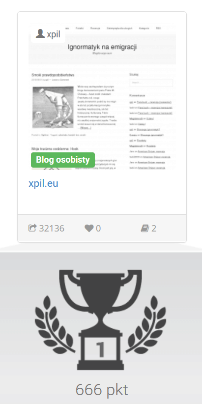 No i teraz nie wiem, zgłosić im, że ktoś im się włamał do systemu i wstawił jakiś śmieciowy blog na podium, czy też wyjść z bardziej prawdopodobnego założenia, że skoro jestem Polakiem na emigracji, to powinienem to podium porządnie wyszorować, skoro już na nim stoję?