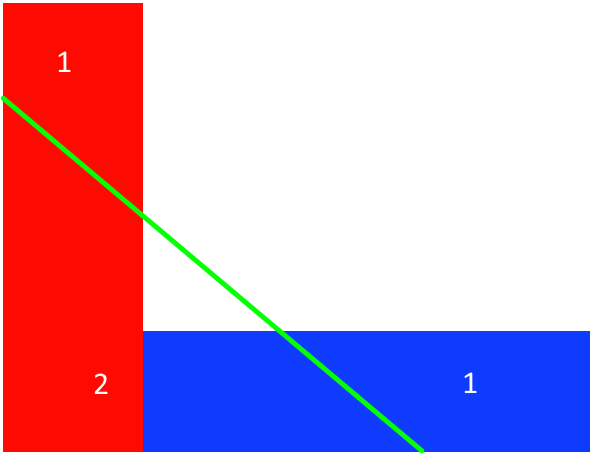 W takim przypadku chodzi o to, żeby suma pól powierzchni części oznaczonych jedynkami równało się polu powierzchni części oznaczonej dwójką.