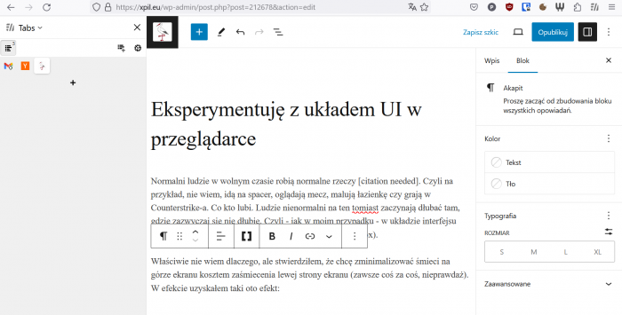 Eksperymentuję z układem UI w przeglądarce