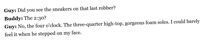 Guy jest bowiem drugoplanową postacią w grze komputerowej 🙂 Rzecz jasna nie ma o tym żadnego pojęcia...