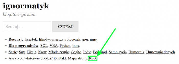Dlatego wciąż mam u siebie czynny kanał RSS, który można sobie zasubskrybować dowolnym czytnikiem RSS. O, tutaj: