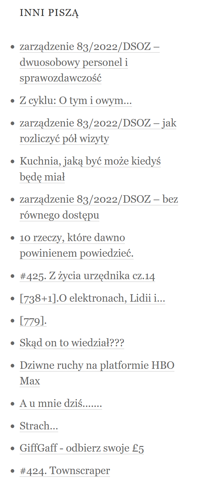 Widżet ten to jest moje podziękowanie innym blogerom za to, że coś tam ciągle tworzą. Dzięki niemu mam nadzieję trochę porozszerzać innym ludziom zasięgi.