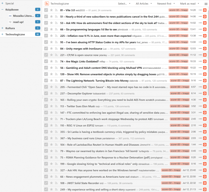 Aha, no i nie ma apki na telefon, więc będę musiał sobie czytać RSS przez przeglądarkę, jak jakieś zwierzę... Dzięki komentatorom poniżej odkryłem też, że jest aplikacjia mobilna do tt-rss. Chwała komentatorom!