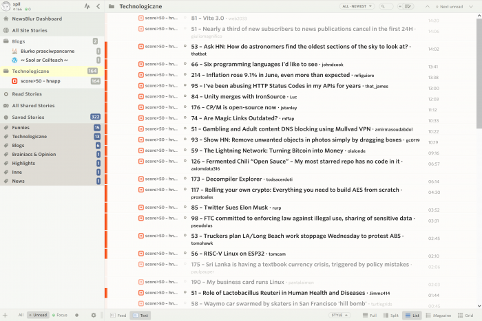 Dawnymi czasy do konsumowania tychże kanałów używałem Google Reader-a. Ale potem wielki Gie stwierdził, że RSS jest już passé i Readera ubił, więc przeniosłem się na NewsBlur, którego chwaliłem i sławiłem przez ostatnich 9 lat.