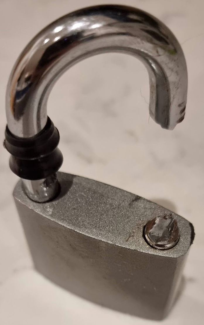 Ku potomności, tak wygląda kłódka przecięta nożycami do drutu: