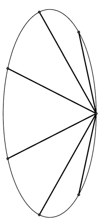 Wybieramy jeden z tych (N+1) punktów łączymy go za pomocą N cięciw z pozostałymi N punktami, o tak: