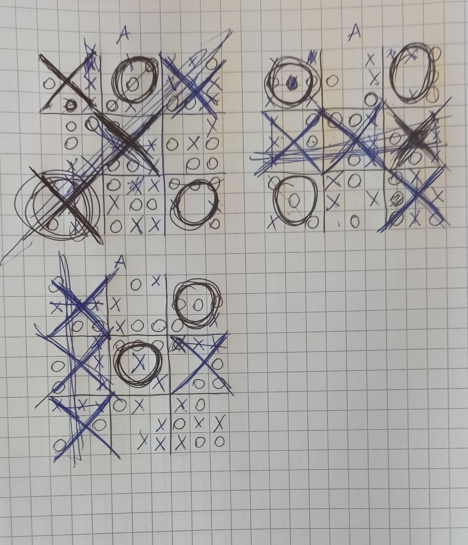 Jak już wspomniałem, celem gry jest ustawienie trzech swoich dużych symboli w jednej linii (czyli "wygranie" trzech małych plansz ustawionych w jednej linii).