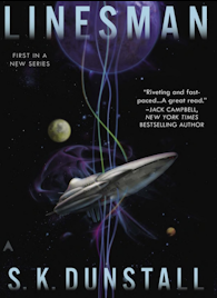 Jakiś czas temu, będzie ze trzy tygodnie albo i więcej, znajomy współczytacz polecił mi serię "Linesman", której pierwszy tom nosi ten sam tytuł. Autorem jest nieznany mi dotąd duet żeński pod pseudonimem S. K. Dunstall. Powieść zalicza się do gatunku Space Opera.