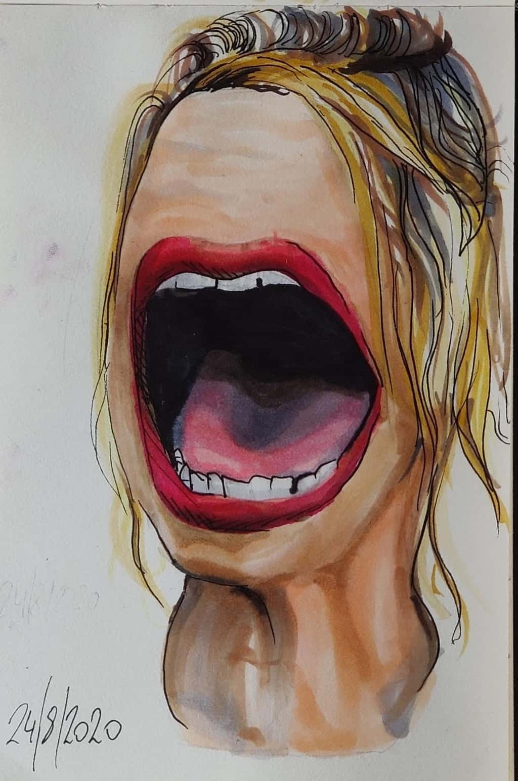 Młoda czasem rysuje mazakami czyli flamastrami. Gęba jest dość zabawna:  A tu oryginalne zdjęcie, które posłużyło jako wzór:
