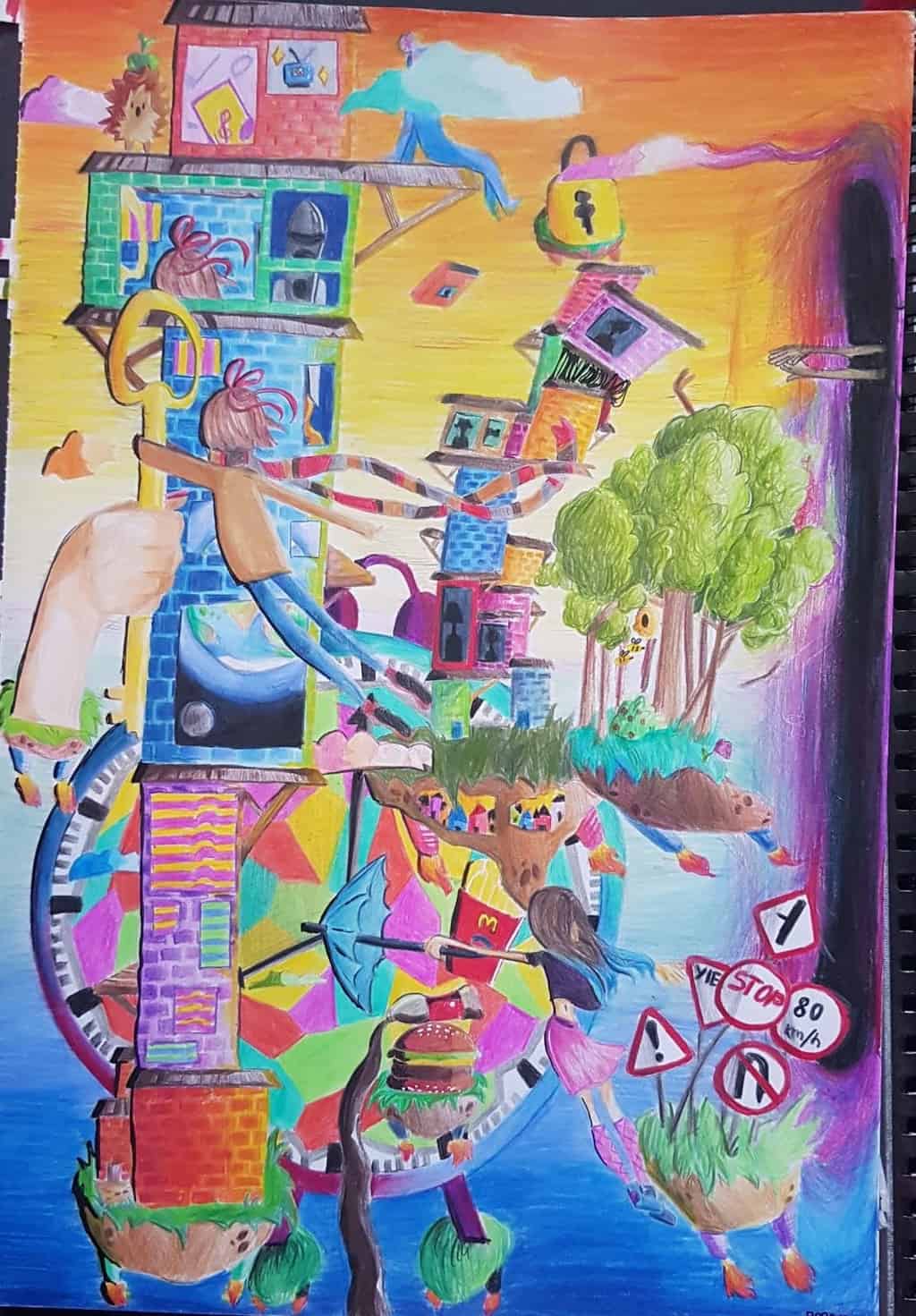 Córka wzięła kredki i narysowała opowieść o tym, że wszystko prędzej czy później wpadnie do dziury. Trochę jej to zajęło, bo to A3, ale efekt - przepiękny.