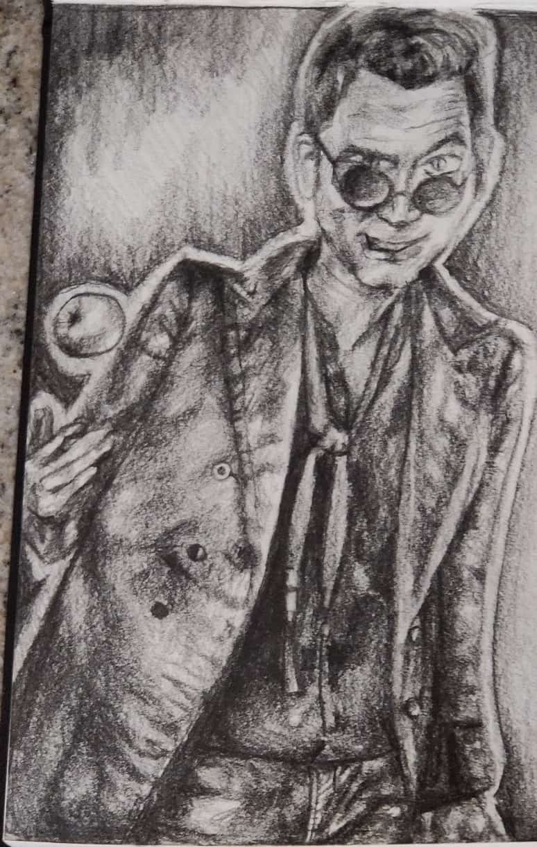Młoda ma talent do wyszukiwania fajnych seriali. "The Good Omens" to jeden z nich. Tutaj Crowley podrzuca jabłko.  Ołówek. A tu oryginalny plakat: