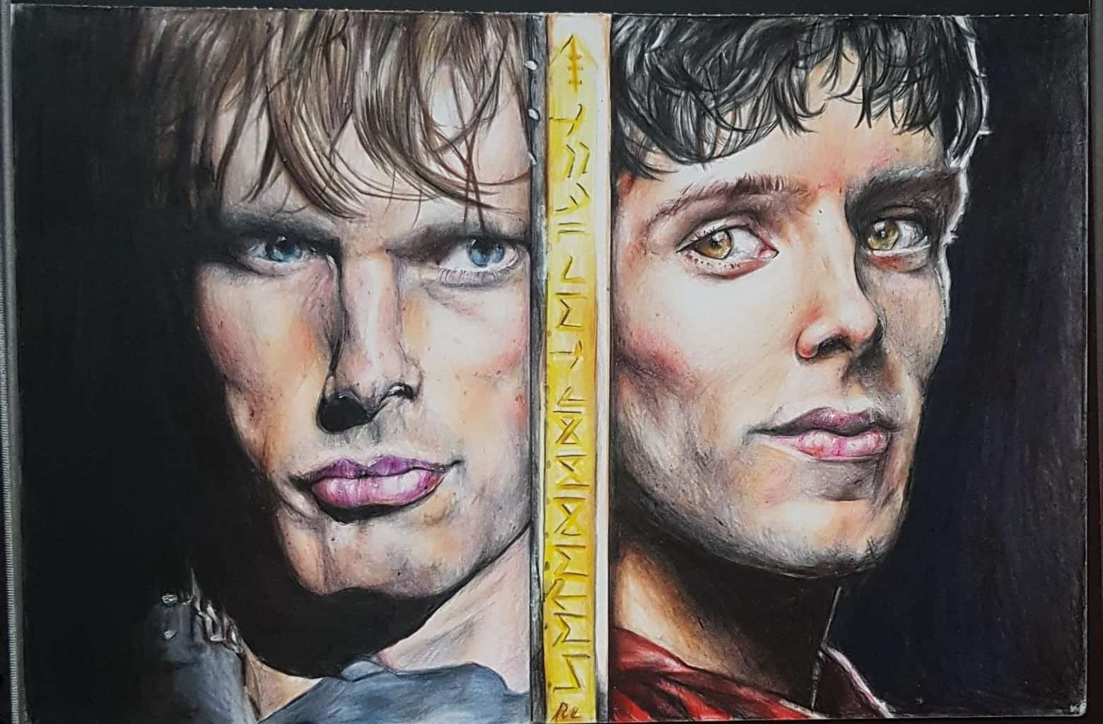 Jeszcze jeden rysunek z "Merlina" - tym razem obydwaj główni bohaterowie. Styczeń 2020.  Bradley James (Król Artur) i Colin Morgan (Merlin)