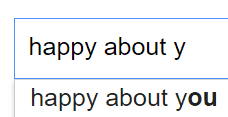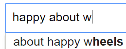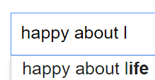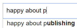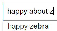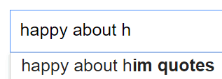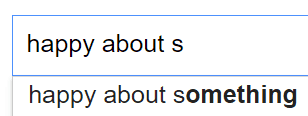 Czyli tak: wpisuję w Google frazę "happy about" i potem pierwszą literę alfabetu. I sprawdzamy, co się pojawi na samej górze. A potem skasujemy pierwszą literkę alfabetu i w jej miejsce wstawimy drugą. A potem trzecią. I tak, kurna, aż nam się alfabet skończy.