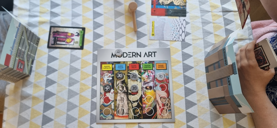 Następnie każdy z graczy dostaje po sześć dodatkowych kart z obrazami do ręki i zaczyna się druga runda. Rankingi z rundy pierwszej zostają "zamrożone" do końca gry, gracze próbują teraz wypromować różnych artystów w drugiej rundzie - znów wystawiając obrazy na aukcje, szukając okazji itd. Na koniec drugiej rundy trzech (lub - rzadziej - dwóch) artystów znów trafi do rankingu. No i teraz tak: załóżmy, że Rafael Silveira w pierwszej rundzie wylądował na trzecim miejscu w rankingu, a w drugiej - na pierwszym. W tym momencie jego obrazy warte są po €40K za sztukę (€10K za ranking z pierwszej rundy i €30K za drugą rundę). Jeżeli na koniec drugiej rundy mam u siebie dwa jego obrazy, sprzedaję je łącznie za €80K. I tak dalej.