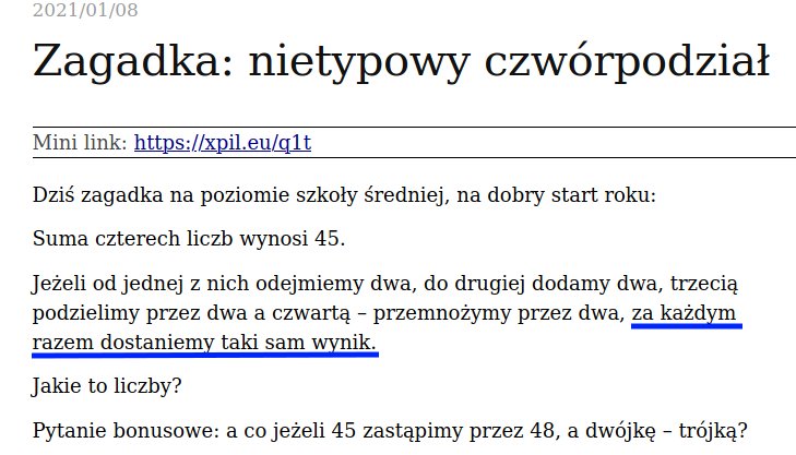 Kilka godzin później poprawne rozwiązanie nadesłał też Cichy Fragles: