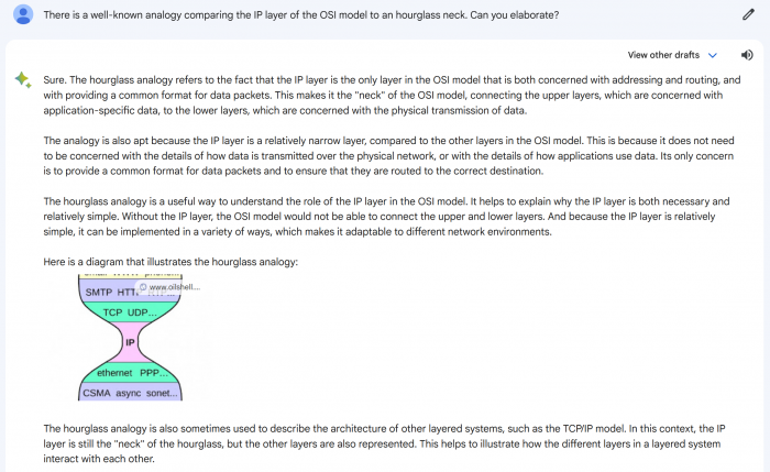 Po tym ambitnym słowie wstępu czas na samo gęste, czyli Google Bard. Technologia ta jest dość młoda, pierwsze publiczne prezentacje miały miejsce w marcu zeszłego roku, a nieco szerzej była dostępna dopiero od października 2022. Niestety (a może na szczęście?) wśród krajów, które Wielki Gie zdecydował się obdarzyć łaskawością Barda, nie było Irlandii, mogłem więc tylko smętnie czytać artykuły o Bardzie bez możliwości pogrzebania weń osobiście.