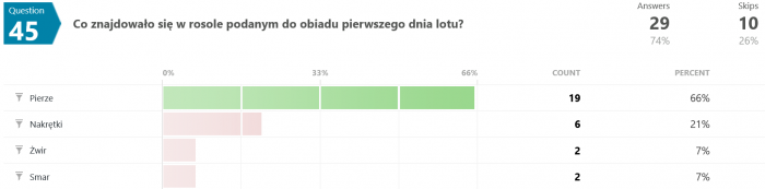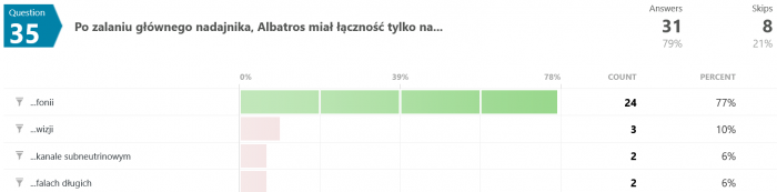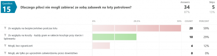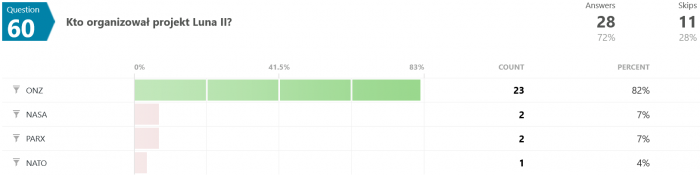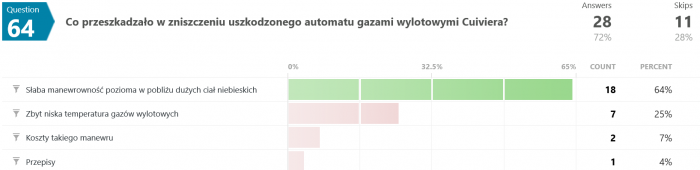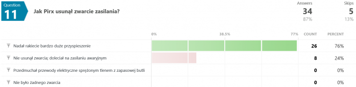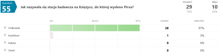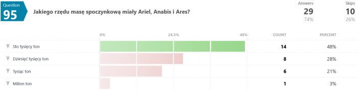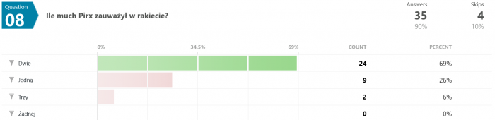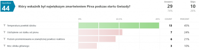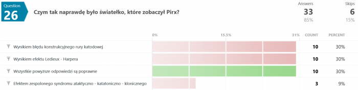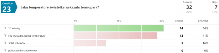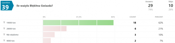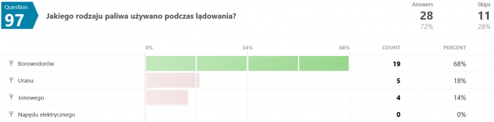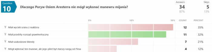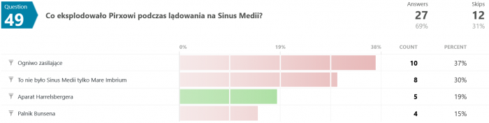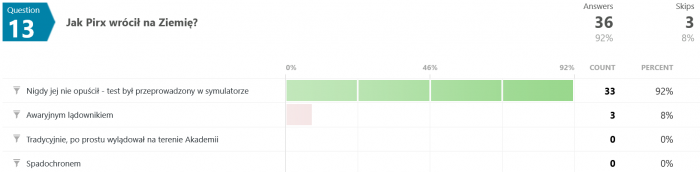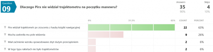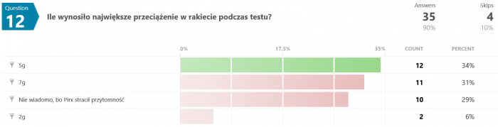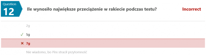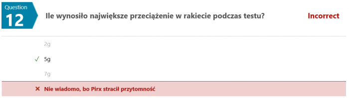 Na pytanie #12 tylko 12 osób (spośród 35) odpowiedziało poprawnie. Swoją drogą nigdy nie wyjaśniono w jaki sposób w ogóle udało się uzyskać zmienną grawitację w rakiecie testowej.