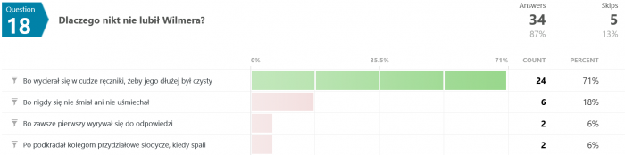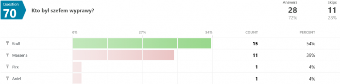 Zobaczmy teraz jak ludziom poszło z poszczególnymi pytaniami.
