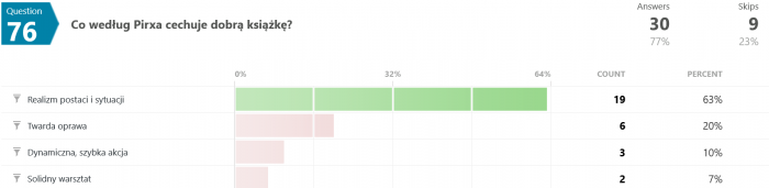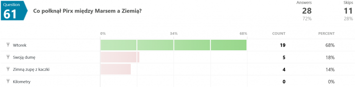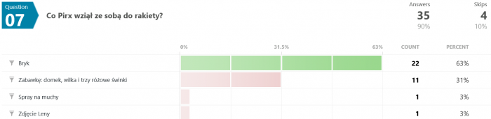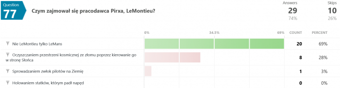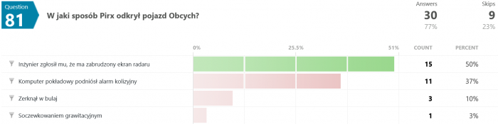 Niemniej jednak wszystkie moje stare quizy ciągle sobie wiszą, dziś więc z braku lepszego pomysłu zajrzymy sobie w wyniki jednego z nich, tego o pilocie Pirxie.