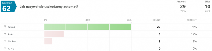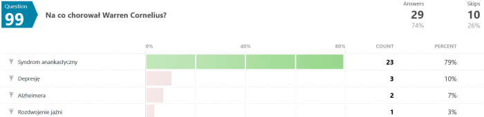Co ciekawsze, zwycięzca (ten od 92%) udzielił błędnych odpowiedzi na dość proste pytania: walnął się w pytaniach 10, 12, 26, 44, 46, 56, 58 i 65.