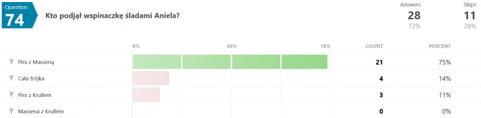 Przez dwa i pół roku do quizu podeszło 67 osób, co jest liczbą zaskakująco dużą biorąc pod uwagę zasięg i popularność tego blogu. Spośród tych 67 aż 42 dotarły do końca.