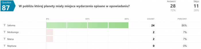 Pytanie 10 było dość trudne, jeżeli nie znało się pierwszego opowiadania prawie na pamięć, ewentualnie nie miało się tekstu książki pod ręką.