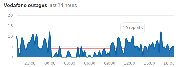 Zaglądam na https://downdetector.ie/status/vodafone/ a tam faktycznie większa niż zwykle liczba zgłoszeń, że nie działa: