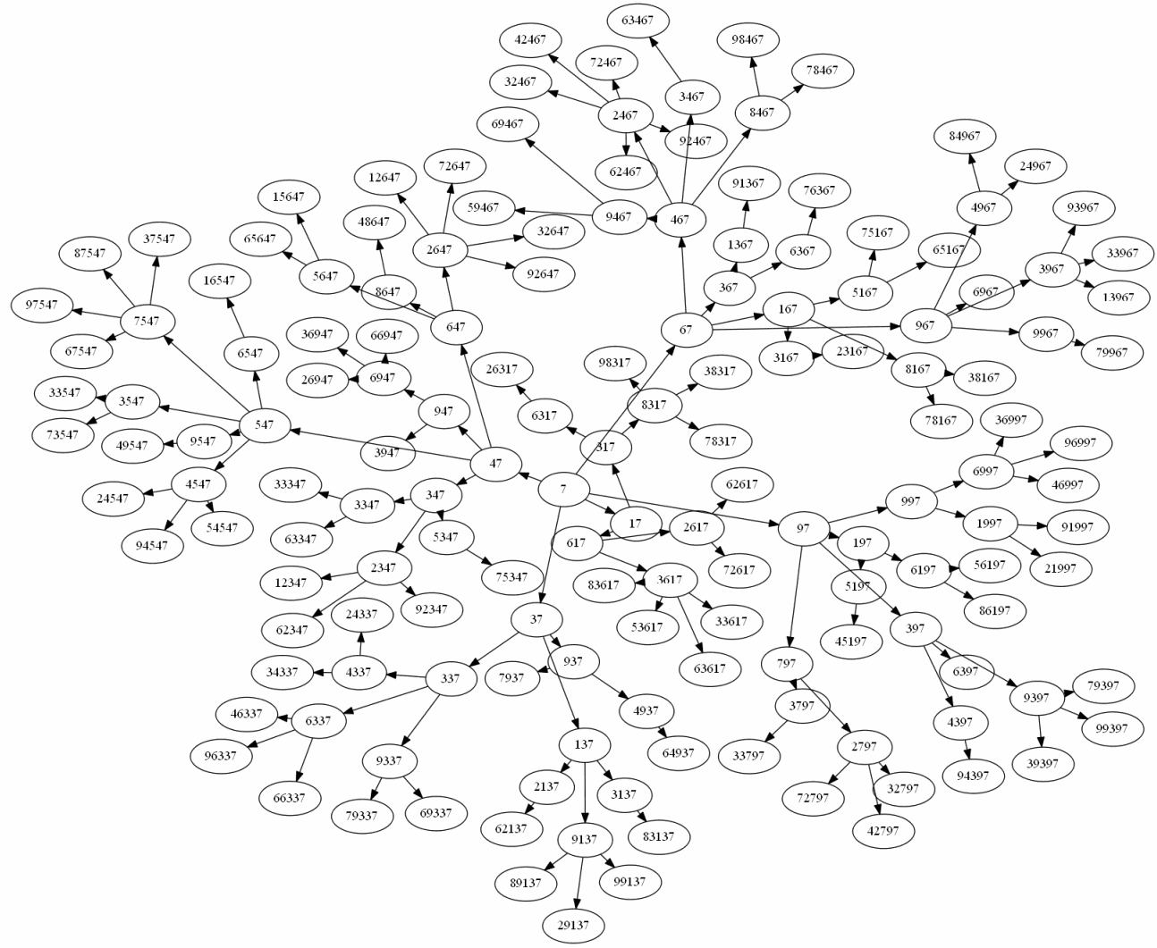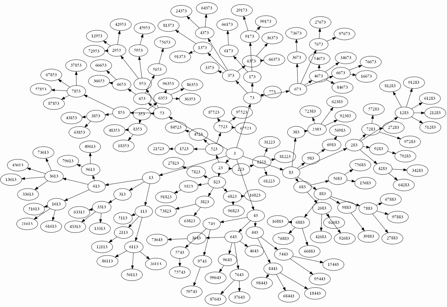 No to żeby na koniec trochę unienudnić, poniżej prezentuję grafy utworzone z takich właśnie liczb, ale tylko do pięciocyfrowych (większy graf wygląda już dość nieczytelnie):