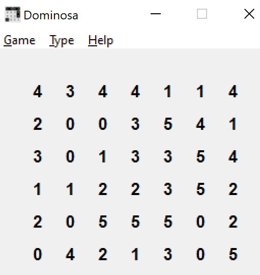 Na kwadratowej planszy w każdym polu wpisana jest cyfra od 0 do 6 (w trudniejszych wersjach nawet od 0 do 9). Celem gry jest znalezienie położenia domin na tej planszy w taki sposób, żeby wykorzystać każde domino dokładnie raz i żeby każdy kwadrat domina leżał na polu oznaczonym odpowiadającą mu liczbą.