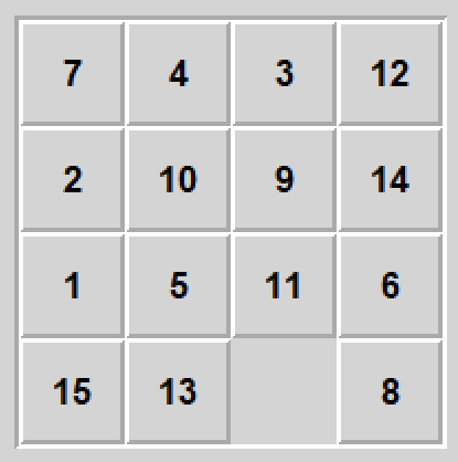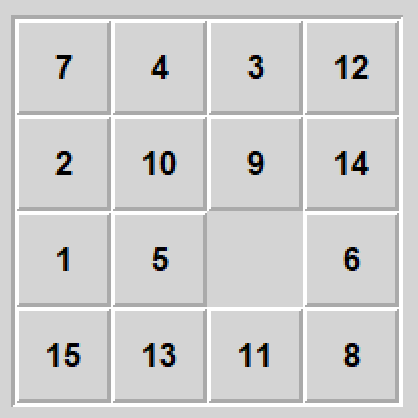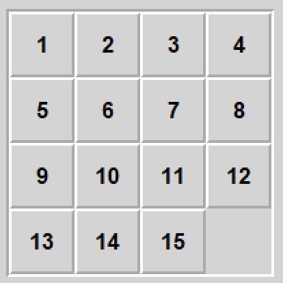 Piętnastka to gra, którą większość ludzi z mojego pokolenia zna z dzieciństwa w wersji mechanicznej. Plansza 4x4, z piętnastoma ponumerowanymi kwadratami i jednym pustym polem na które można przesuwać sąsiedni kwadrat - celem gry jest ułożenie kwadratów po kolei od 1 do 15.