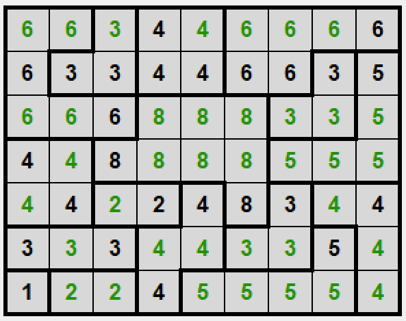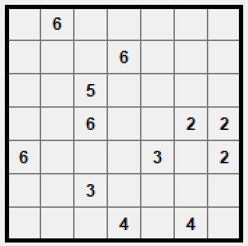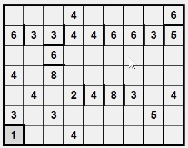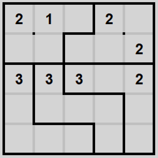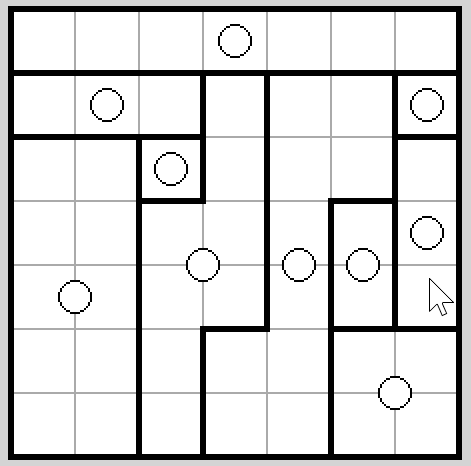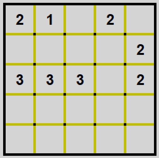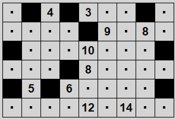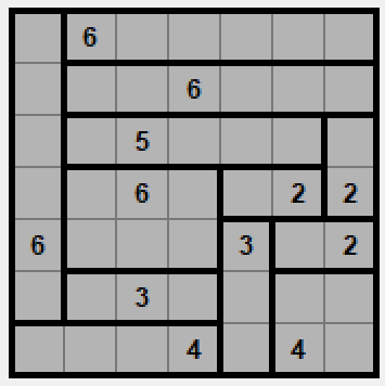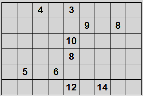 Gra w prostokąty polega na ustaleniu podziału planszy na prostokątne segmenty w taki sposób, żeby każda liczba znalazła się wewnątrz segmentu o wielkości odpowiadającej tej liczbie.