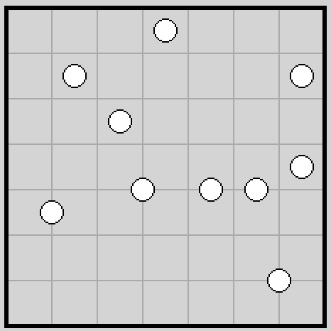 W Galaktyki gra się na - uwaga, niespodzianka - kwadratowej planszy podzielonej na kwadratowe pola. Na polach (lub ich przecięciach) znajdują się na początku gry białe znaczniki. Należy podzielić planszę wzdłuż kwarędzi pól na tyle części, ile jest białych znaczników w taki sposób, żeby (A) każdy znacznik siedział w osobnej części oraz (B) każda część była symetryczna, przy czym chodzi o symetrię środkową a więc po obróceniu o 180 stopni wokół środka powinno wyjść to samo co przed obrotem.