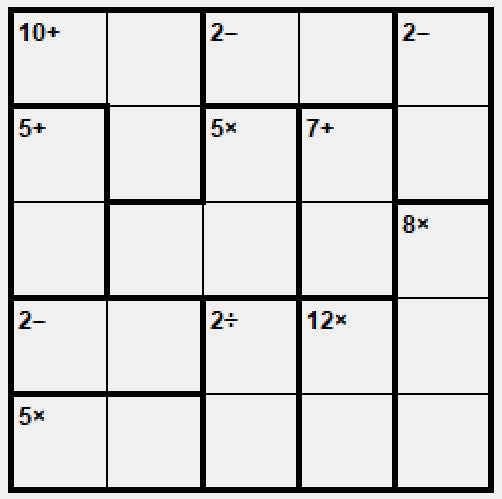 Keen (czyli po naszemu Chętny) to odmiana Sudoku z dodatkowym twistem w postaci działań matematycznych. Kwadratowa plansza o N x N polach (kto by pomyślał, no, no…) podzielona na nieregularne kształty - w każdy kształt jest wpisana liczba oraz działanie; należy umieścić w każdym polu takie liczby między 1 a N, żeby zadane działanie na liczbach z danego kształtu dawało konkretny wynik oraz żeby liczby w każdej kolumnie i wierszu były unikalne.