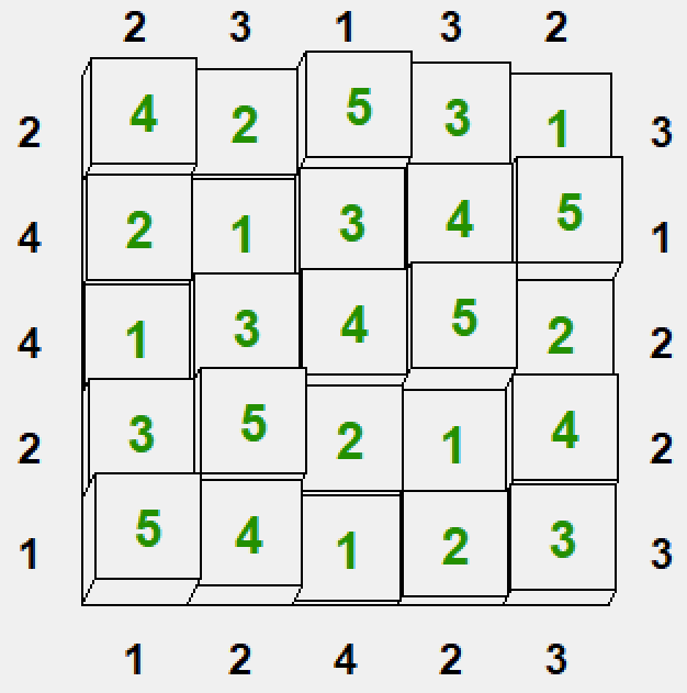 Wieże to gra trójwymiarowa na planszy dwuwymiarowej. Celem gry jest ustalenie lokalizacji i wysokości wież na kwadratowej planszy. Każde pole zawiera wieżę o wysokości między 1 a długością planszy (czyli na przykład na planszy 5x5 maksymalna wysokość wieży to 5). Podobnie jak w Sudoku, tutaj również każdy wiersz i każda kolumna muszą zawierać unikalny zestaw wież. Podpowiedzi na krawędziach planszy mówią ile wież "widać" z danej krawędzi (wieże wyższe przesłaniają widok na niższe).