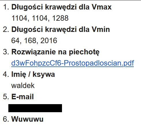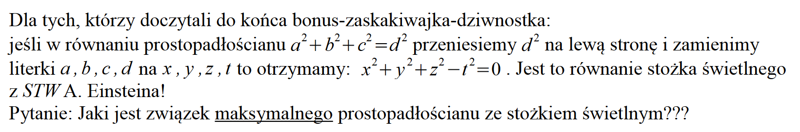 I to jest poprawna odpowiedź na pytanie bonusowe. Natomiast jeżeli chodzi o zadanie bonusowe na sterydach, czyli szukanie najpojemniejszego prostopadłościanu "na piechotę" to temat robi się zdecydowanie ciekawszy.