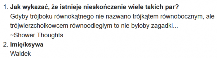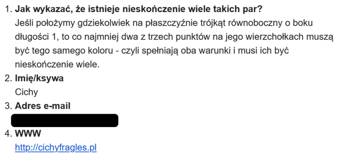 2Dosłownie pół godziny później rozwiązanie nadesłał Waldek - doceniam dowcip - zaliczam 🙂