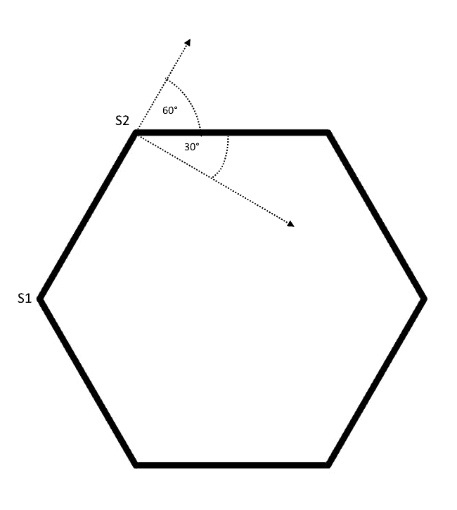 Najpierw zauważamy (a właściwie czytamy o tym w treści oryginalnej zagadki), że każdy ze ślimaków będzie poruszał się po takiej samej krzywej, a więc ustawienie (czyli kąt + prędkość pościgu) każdej pary ślimaków będą zawsze takie same - do końca podróży ślimaki będą znajdować się na wierzchołkach zmniejszającego się i leniwie obracającego sześciokąta foremnego.