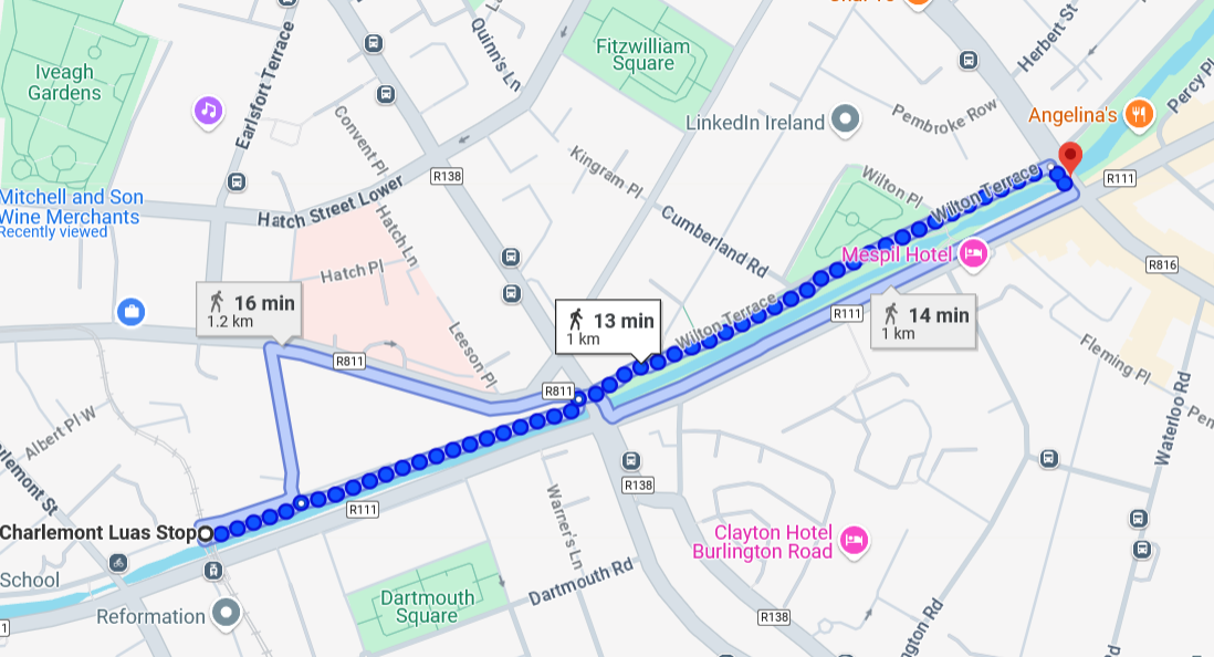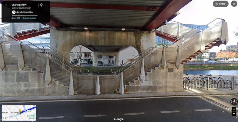 No i teraz tak: jak się już wsiądzie w zieloną, najbliższym przystankiem do Baggot Bridge jest Charlemont:
