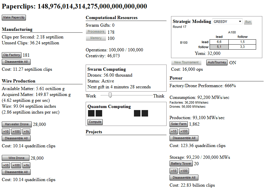 Setki, tysiące, miliony spinaczy na sekundę... Trzeba będzie po drodze rozwinąć algorytmy grania na giełdzie, bo z samej sprzedaży spinaczy kasy nie wystarczy na dalszą produkcję.