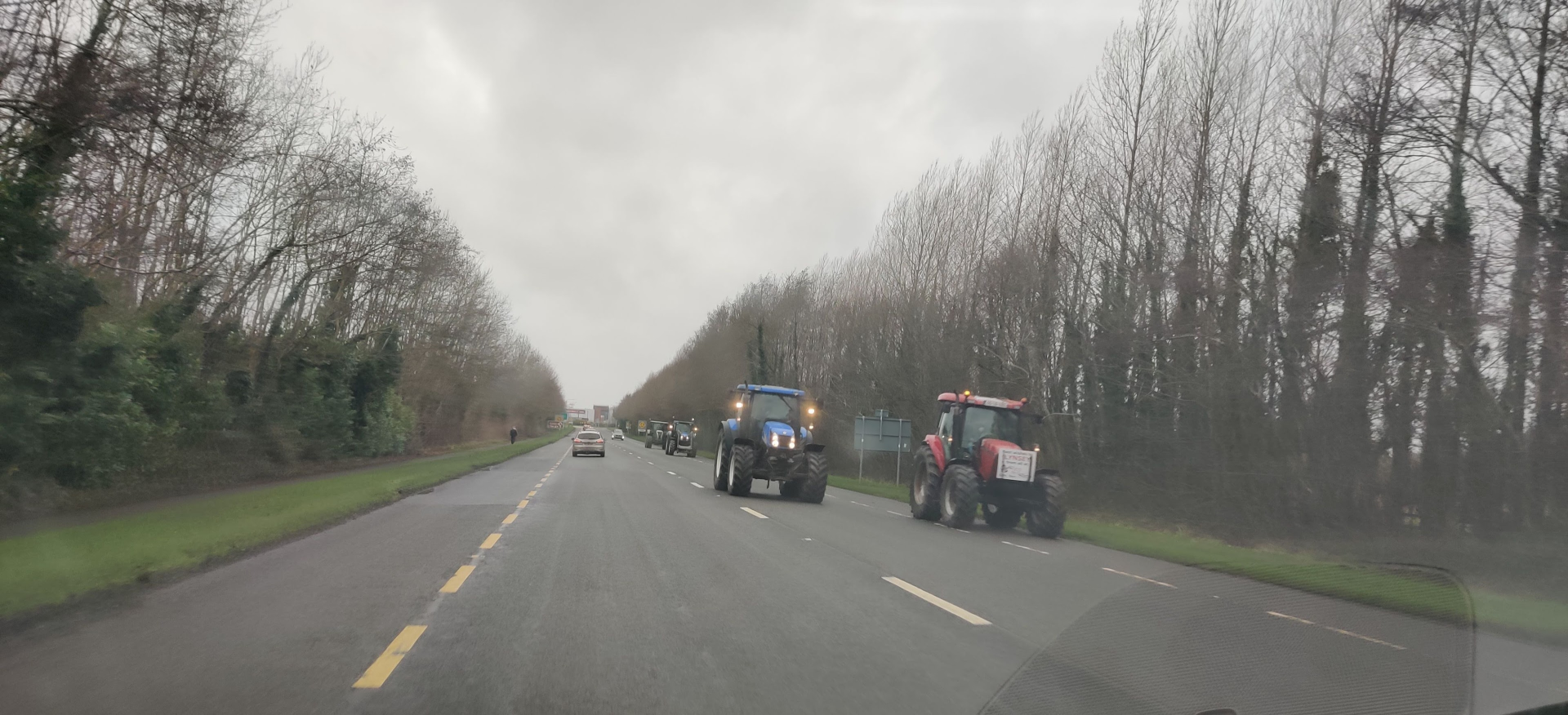 Jedziemy dalej. I czym dalej jedziemy, tym się robi dziwniej. Że ruch mały, to logiczne. W okresie świątecznym ludzie wolą siedzieć w domach, poza tym lokalny rząd ponakładał różne restrykcje, nie wolno wyjeżdżać dalej niż, o ile się nie ma ważnego powodu i tak dalej, wiadomo. Ale od jakiegoś czasu jedyne pojazdy jakie mijamy to traktory! Duże, małe, szybsze, wolniejsze, a co najdziwniejsze wszystkie zapakowane po dach pasażerami. Zasadniczo w traktorze powinien siedzieć kierowca i już. A tu po trzy, cztery, czasem pięć osób. Ki czort?