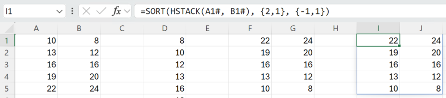 W ostatnim przykładzie {2,1} oznacza sortuj według drugiej kolumny, a jeżeli wartości się powtarzają, to w tej powtórzonej grupie sortuj według pierwszej kolumny. Natomiast {-1,1} oznacza że sortowanie według pierwszej kolumny jest malejąco, a drugiej - rosnąco.