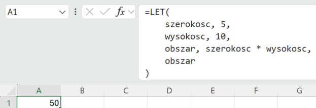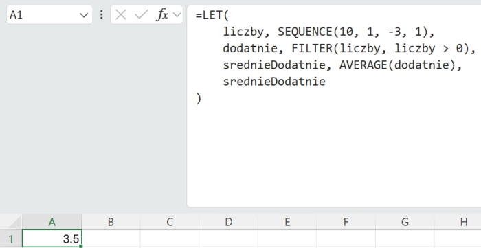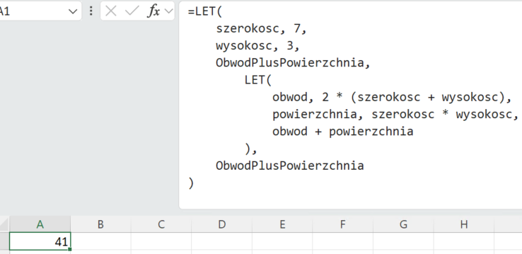 LET to prawdziwy kombajn, ze składnią trochę kojarzącą się z PowerQuery: